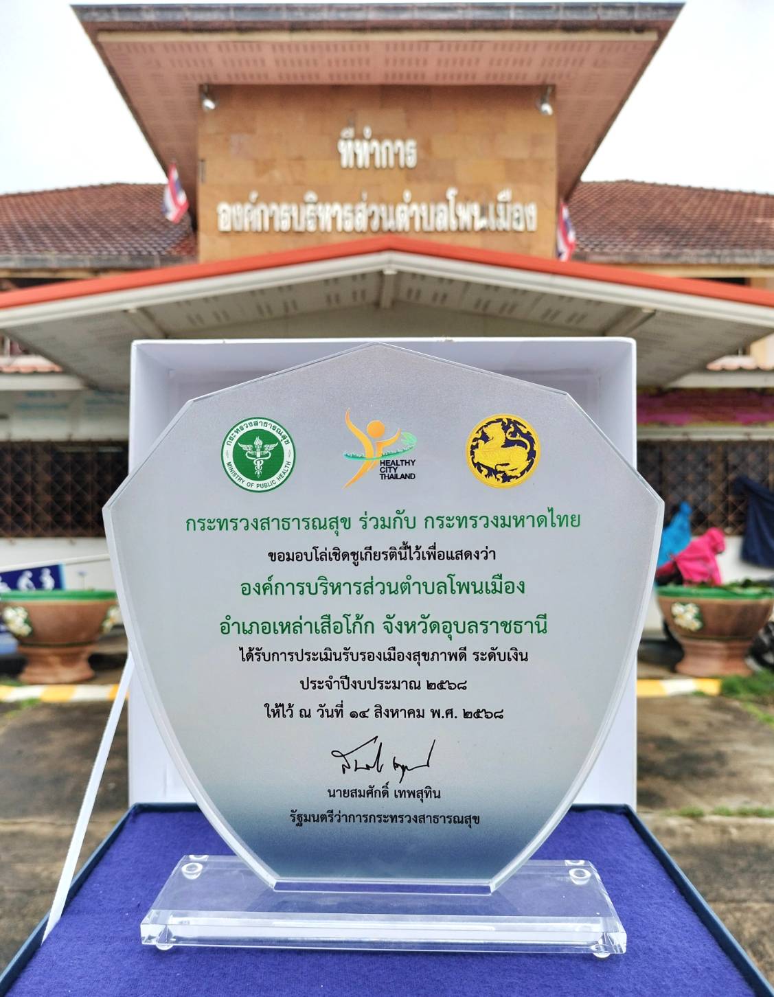 และในปีนี้องค์การบริหารส่วนตำบลโพนเมือง ได้รับโล่ผ่านการรับรองเมืองสุขภาพดีระดับเงินปี 2568