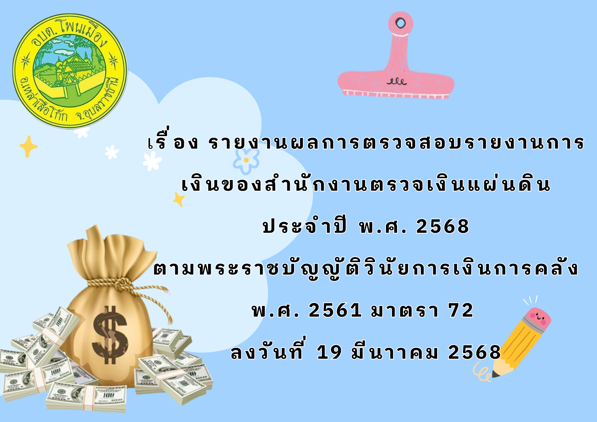 ตามพระราชบัญญัติวินัยการเงินการคลัง พ.ศ. 2561 มาตรา 72 ลงวันที่ 19 มีนาาคม 2568