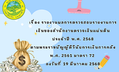 เรื่อง รายงานผลการตรวจสอบรายงานการเงินของสำนักงานตรวจเงินแผ่นดินประจำปี พ.ศ. 2568 ตามพระราชบัญญัติวินัยการเงินการคลัง พ.ศ. 2561 มาตรา 72 ลงวันที่ 19 มีนาาคม 2568